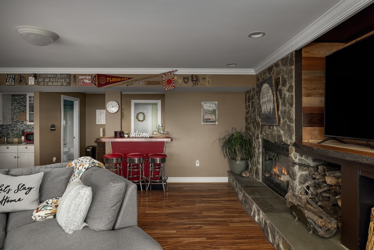 Départ jusqu'à 20 h le dimanche, il suffit de nous le faire savoir! Beaucoup de stationnement pour les remorques et les voitures de course. Situé à 1,6 km de l'hippodrome du petit village de Summit Point. Il s'agit d'une grande ancienne salle de classe rénovée avec des plafonds de 13 pieds dans l'ancienne école primaire. Summit Point est un endroit calme où vous pouvez faire une promenade tranquille.