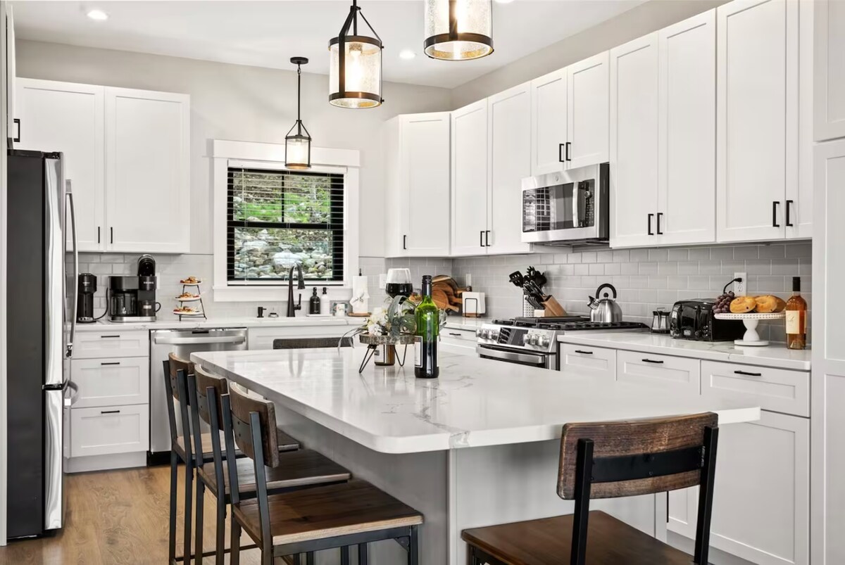 ✔ Spacieux 4 chambres, lit gigogne, 4 salles de bain – Peut accueillir jusqu'à 12 personnes Salle de jeux ✔ ultime avec ping-pong, basket-ball, Pac-Man, Jam NBA et plus – Climat contrôlé pour s'amuser toute l'année ! ✔ Détendez-vous dans le spa éclairé par des guirlandes lumineuses avec vue sur la rivière Sunday ✔ Foyer avec vue sur la montagne ✔ Grande terrasse avec barbecue au gaz ✔ Foyer au gaz Générateur ✔ de maison complète ✔ Climatisation ✔ Animaux acceptés (avec frais) Chaise ✔ haute, pack ‘n Play et tous les draps, serviettes et savons fournis À ✔ 10 minutes de la rivière Sunday