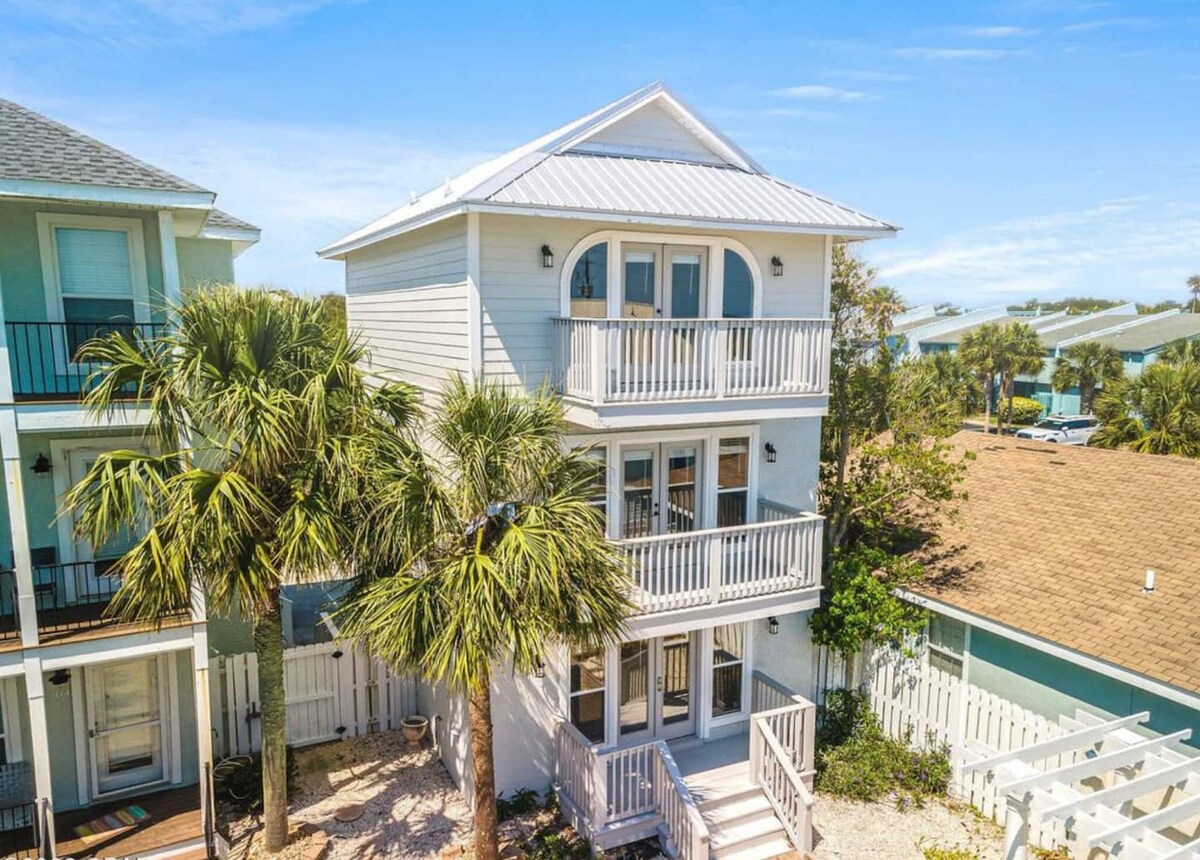 Bienvenue dans notre maison de plage familiale! Tombez sous le charme de notre piscine, de notre cour arrière conçue pour recevoir et de la plage à quelques pas! Dégustez un cocktail sur le balcon, puis détendez-vous près du foyer. Profitez d’une connexion Wi-Fi ultra-rapide! Nous sommes à 10 minutes de route de Pier Park, à 8 minutes de Rosemary Beach et de 30A. Renseignez-vous sur la location de notre voiturette de golf 4 places pour 125 $/jour ! Nous acceptons les chiens avec le paiement de 170 $ de frais pour les animaux ; 3 maximum. Le chauffage de la piscine est disponible pour 40 $ / jour.