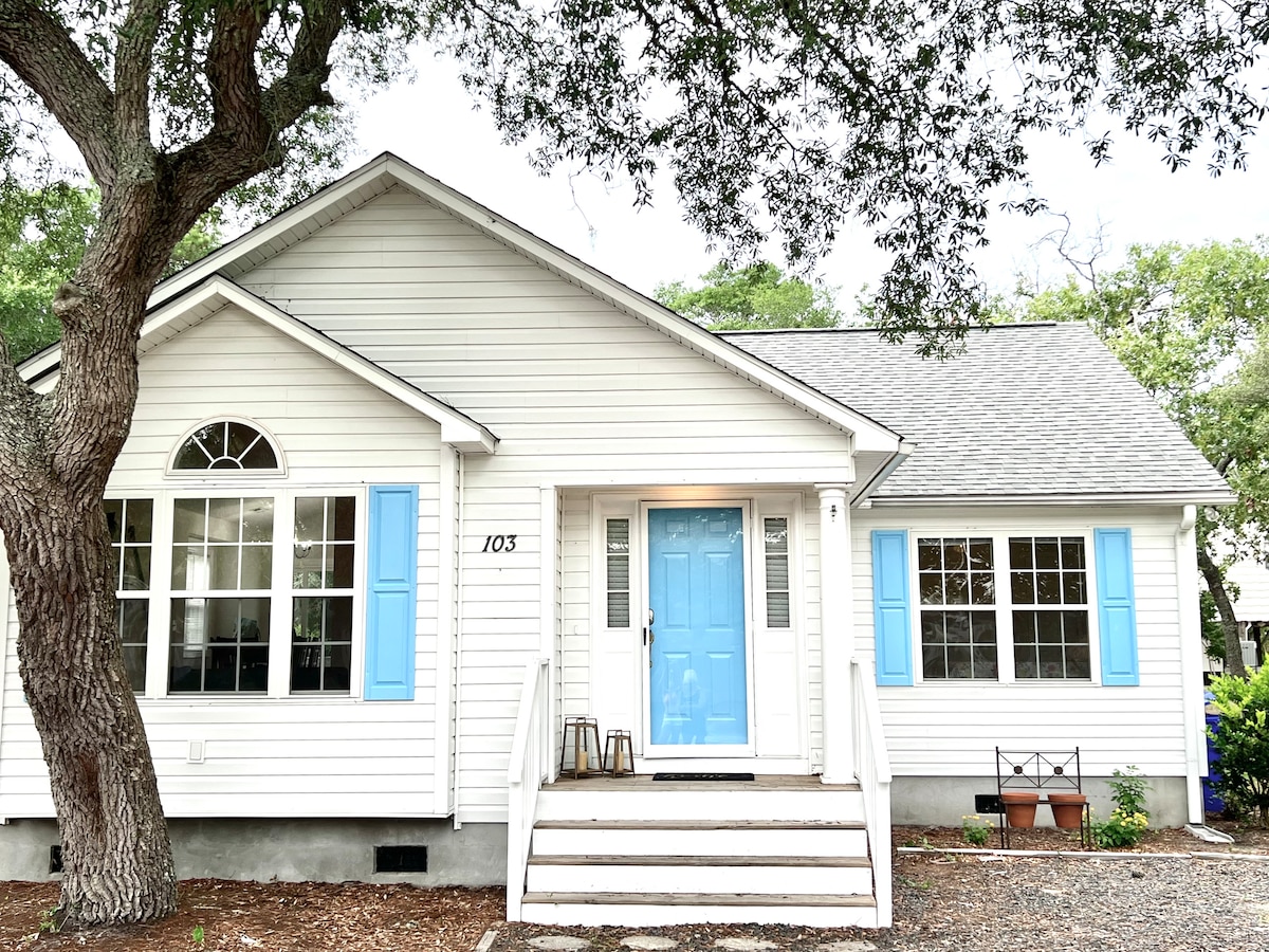 Il s'agit d'une maison de plage familiale adaptée aux chiens sur le côté ouest calme d'Oak Island, à cinq minutes en voiture ou à vélo de la plage, et à un pâté de maisons de la voie navigable Intercostal. Décorée avec goût, avec une cuisine entièrement équipée, une cour arrière clôturée en toute sécurité pour les chiens, un porche arrière grillagé, une plage super accueillante pour les chiens et une petite maison à l'arrière avec un lit, pour dormir; cette maison est un endroit pour les amoureux de la plage qui apprécient le confort et l'art et veulent leurs toutous avec eux.