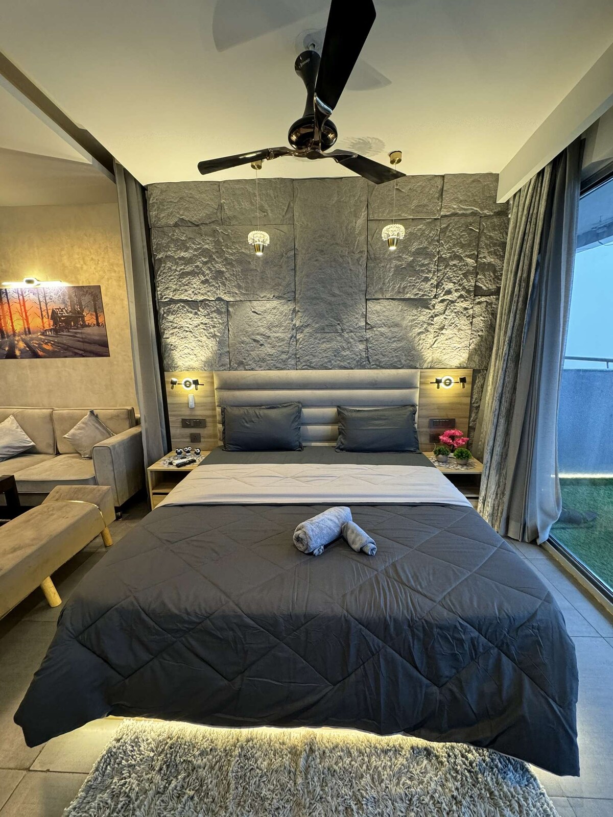 Experience city living like never before in this modern boho-style premium 1BHK with a stunning river view. Designed with elegance, comfort, and luxury in mind, this apartment features high-end furnishings, cozy aesthetics, and hotel-like amenities all wrapped in a calm, peaceful vibe. Whether you’re here to relax, celebrate, or work in style, this space offers a five-star experience with nature right outside your window.