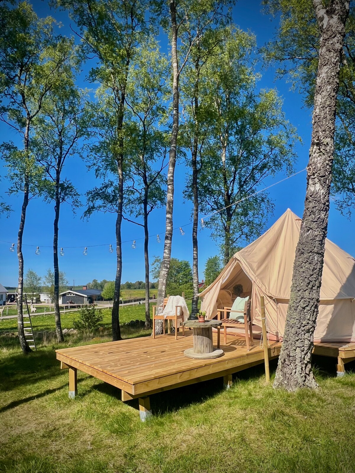Bienvenue dans notre nouvelle oasis au bord du lac Bellen ! Au cœur du Småland et de la région natale d'Astrid Lindgren. Entourée de chênes majestueux juste au bord de l'eau, notre tente de glamping offre un confort de première classe. Ici, vous pourrez profiter du calme, de l'eau, de la forêt et de la faune dans la nature. Cuisinez dans la cuisine extérieure entièrement équipée. Des paniers petit-déjeuner et des options de dîner sont proposés. Endroit idéal pour la détente et les loisirs. Ici, vous pouvez pêcher, pratiquer des activités nautiques, prendre un sauna, etc. Venez créer des souvenirs inoubliables avec nous.
