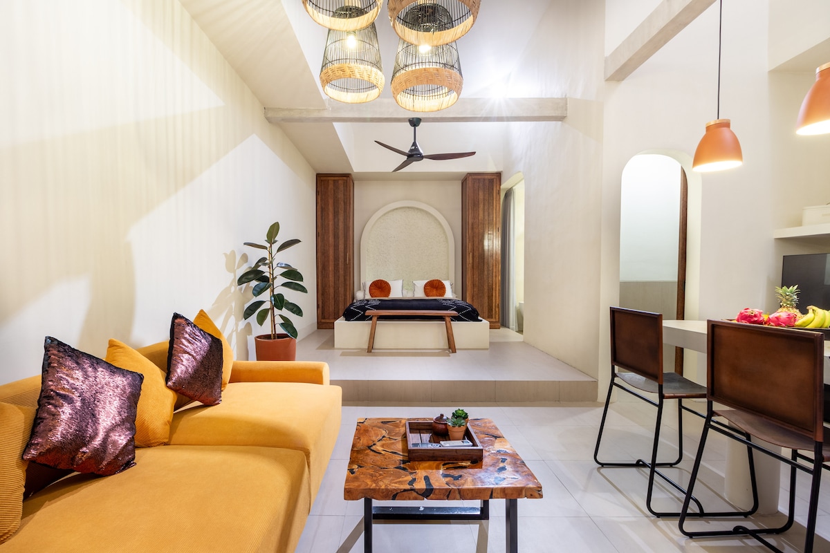 Découvrez une vie surélevée dans la suite sur le toit nouvellement construite, située au centre de Munggu. Cette suite moderne offre une cuisine entièrement équipée, un salon spacieux et un balcon privé avec vue panoramique sur la ville et la mer. Profitez de l'accès à la salle de sport et à la piscine pour un mélange parfait de détente et de bien-être. Son emplacement idéal au cœur de Munggu est à quelques minutes de plusieurs plages populaires, cafés et espaces de coworking, ce qui le rend idéal pour les escapades de fin de semaine ou les longs séjours.