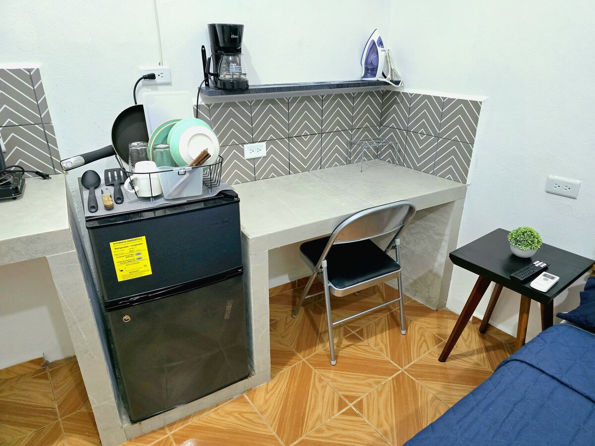 Appartement confortable avec un excellent emplacement. Idéal pour séjour court ou long. Profitez de ce studio confortable avec salle de bain privée, kitchenette, espace de travail, placard et télévision intelligente. Son matelas est très confortable et dispose de la climatisation. Situé sur Av. Méndez, en face de Honda, à proximité de l'hôpital de la femme et de l'hôpital de l'enfant, ainsi que des places, des pharmacies, des magasins et des parcs autour. Zone sécurisée avec un accès facile aux transports en commun. Stationnement dans la rue. Nous vous attendons !
