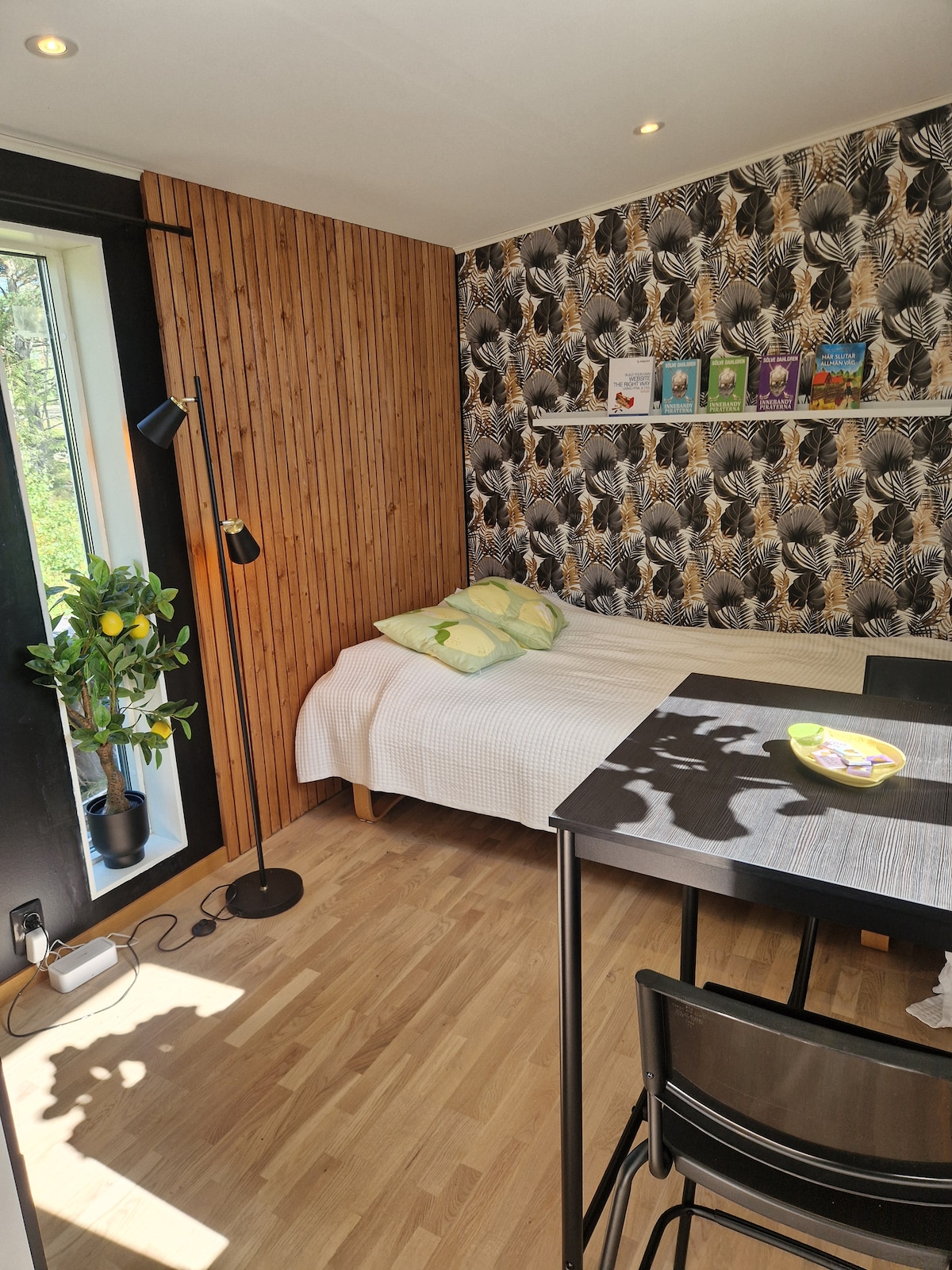 Bienvenue dans notre maison d'hôtes fraîche, située sur notre terrain dans un quartier résidentiel calme et magnifique. À 5 minutes à pied du bus et du train, qui vous emmèneront dans la ville de Stockholm en 25 minutes. Si vous venez en voiture, vous pouvez vous garer gratuitement dans notre allée ! Les draps et les serviettes sont inclus, le lit sera fait et prêt à votre arrivée !
