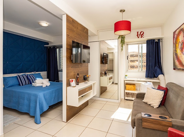 StudioK é mas do que uma hospedagem, é experiência! Quando escolhemos uma casa com propósito uma que acolhe, ensina e equilibra. Em condomínio moderno, destaca-se pela localização privilegiada dentro do DF Plaza Shopping (Águas Claras-DF), de fácil acesso a qualquer ponto: Aeroporto, Metrô, Centro de Brasília. No 6° andar, com vista da cidade e a melhor estrutura de lazer e segurança para sua estada. Queremos que você aproveite cada momento com tranquilidade, estilo e conforto que merece.