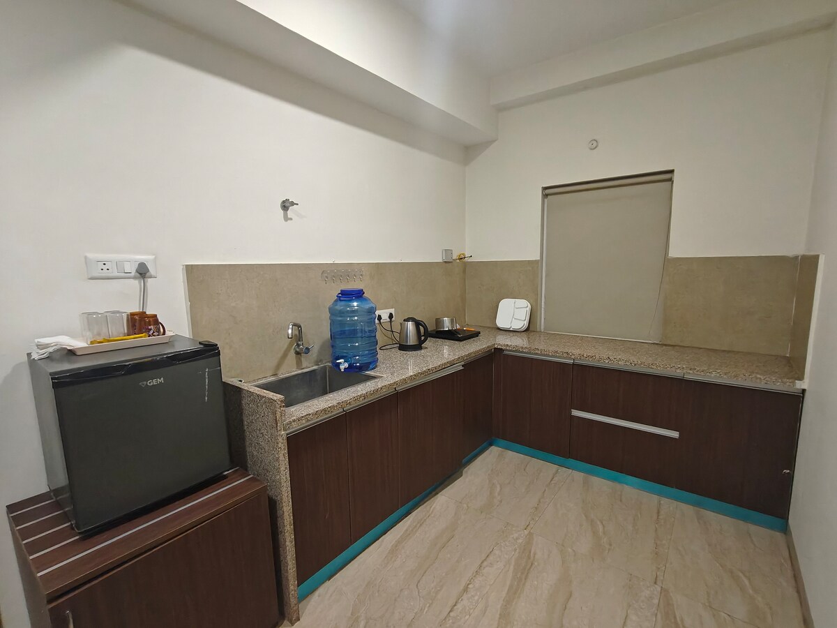 Bienvenue à Shrisaa Homes - A Boutique Stay, un studio soigneusement conçu situé dans l'une des sociétés les plus populaires et les mieux connectées de Vrindavan. Avec son mélange de charme du Rajasthan et d'élégance moderne, ce séjour de charme est parfait pour les couples, les voyageurs en solo ou les petites familles à la recherche d'un logement unique et confortable dans la ville sainte.