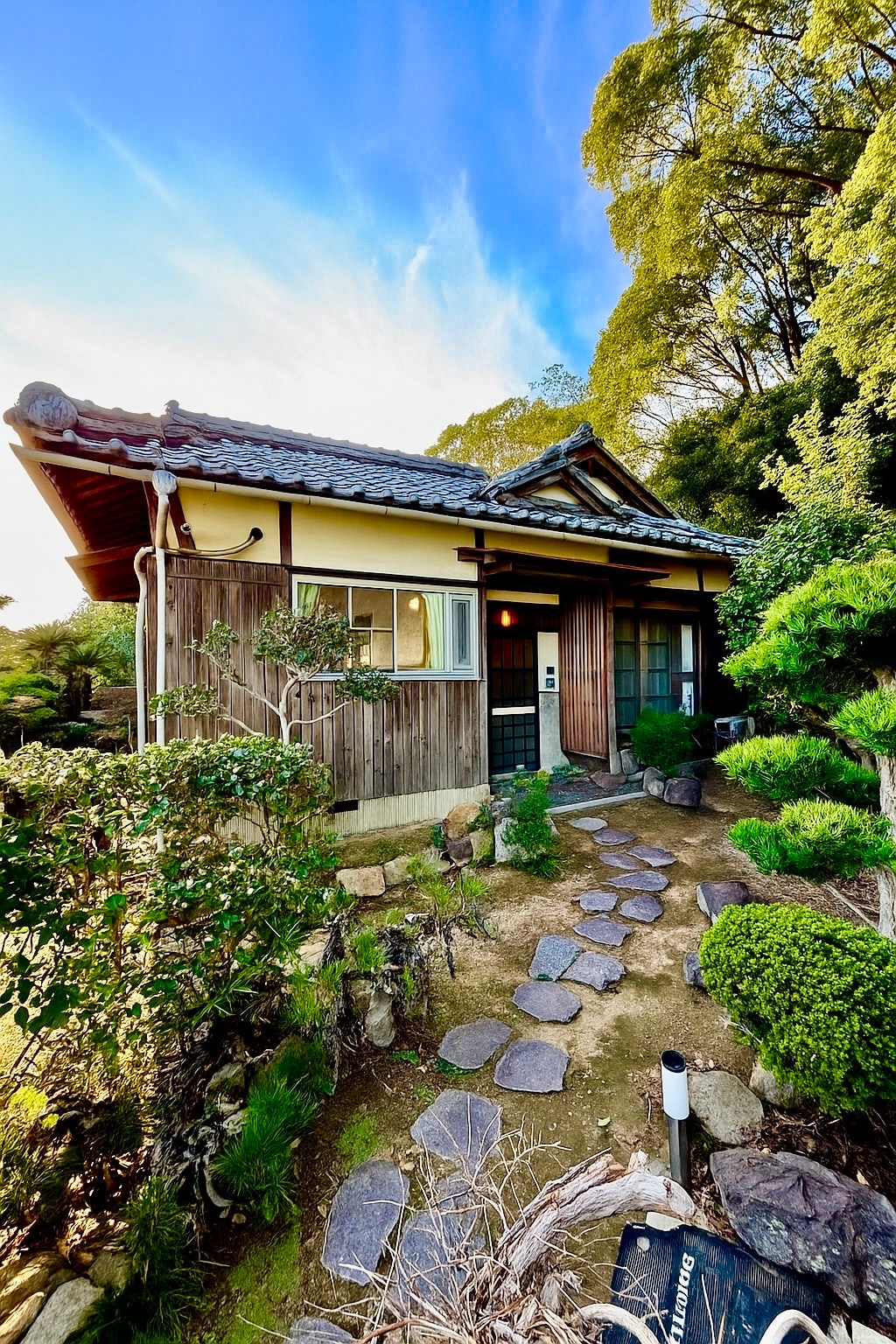 Une maison dans les montagnes. Au nord se trouve un jardin japonais avec des montagnes et des étangs, et au sud une vue japonaise de Satoyama. Le site de 1 000 m ² abrite des olives, des cerisiers en fleurs, des prunes, des kakis et de nombreux arbres. Le bâtiment est situé au milieu du jardin qui montre les expressions des quatre saisons, montrant le bon vieux style japonais. À côté de la maison se trouve un temple japonais traditionnel qui ajoute des fleurs au paysage. Le bâtiment dispose d'un salon moderne rénové et salle à manger, des chambres de style japonais avec des saveurs japonaises, et des chambres de style occidental. Le salon est équipé d'un poêle à bois pour rendre votre séjour hivernal plus agréable. En outre, il y a un bord japonais traditionnel, et il y a une étagère de glycine devant le bord. Pendant la saison où les fleurs de rotin fleurissent, profitez également du temps à la lisière.