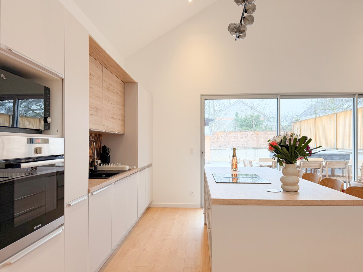 Our 33m² newly-renovated place has air conditioning and is a short walk from charming, historic downtown Dijon. In a separate small building behind our house, you’ll have your own living room/kitchen, separate bedroom, and bathroom. There's free public on-street parking in front of the house. You'll be right next to the Palais des Congrès and the Auditorium, and a short tram ride to the train station, university, and hospital. Nearby supermarkets and other shops. Nous parlons également français.