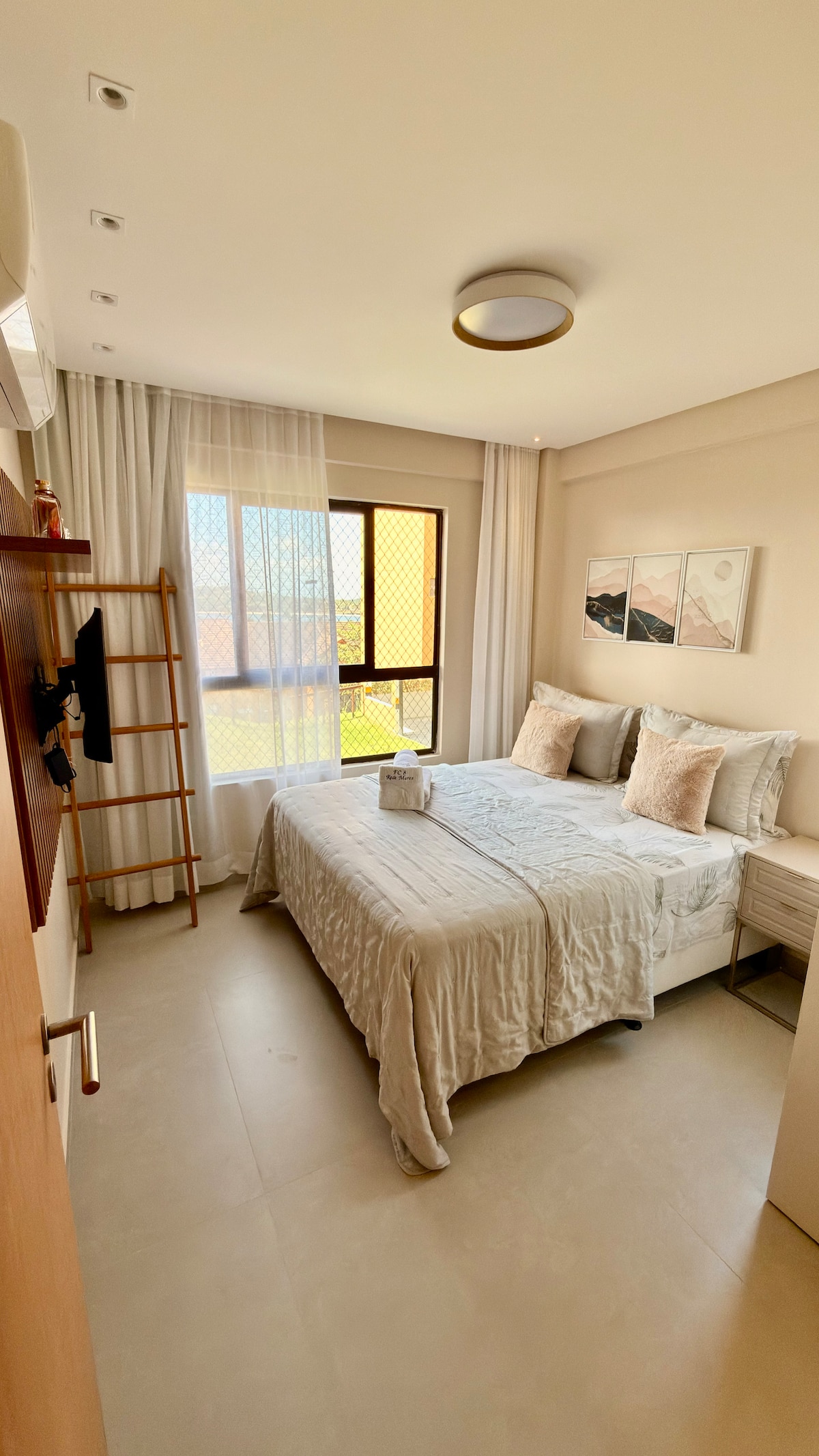 Flat aconchegante e completo no Eco Resort Praia dos Carneiros! ⛱️🌊🐏 Conta com 1 cama de casal, 1 de solteiro e um sofá-cama confortável para 2 pessoas. Dispõe de mesa rústica espaçosa para refeições na varanda super arejada, vaga de estacionamento e elevadores. Próximo à piscina e a poucos metros da praia. Estrutura completa com: 🏋️Academia, 🎯Salão de jogos, 🎥Cinema, 🧺Lavanderia, 🎾Quadras, 🛒Mercadinho, 🪢Slackline e muito mais para dias perfeitos de descanso e lazer! ✌🏻☀️