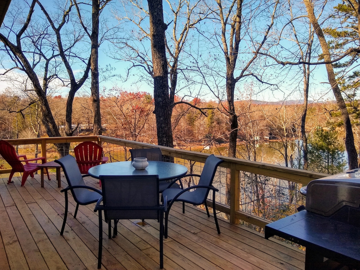 Chalet au bord de l'eau avec les meilleures vues sur les montagnes à longue portée sur le lac. Maison confortable de 2 chambres (800 pieds carrés) avec un plan d'étage ouvert qui dispose d'une grande terrasse fantastique et d'un quai de baignade pour votre escapade. Ce magnifique lac privé de 100 acres est niché dans les montagnes de la Caroline du Sud et constitue un camp de base idéal pour se détendre ou partir à l'aventure.