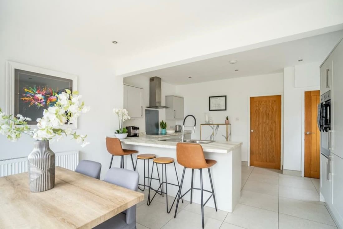« Over Yonder » est une maison élégante, offrant un excellent espace pour se détendre en famille ou entre amis. Avec 3 chambres doubles, salon et cuisine-salle à manger et un grand jardin clôturé. Le jardin a également l'avantage d'une maison d'été avec terrasse. Cela crée un espace supplémentaire fabuleux pour se détendre ou travailler. « Over Yonder » est idéalement situé dans une rue calme à seulement 1,5 miles du centre-ville, ce qui en fait un trajet de 5 minutes en voiture ou 30 minutes à pied. L'arrêt de bus et le magasin local sont à seulement 2 minutes à pied.