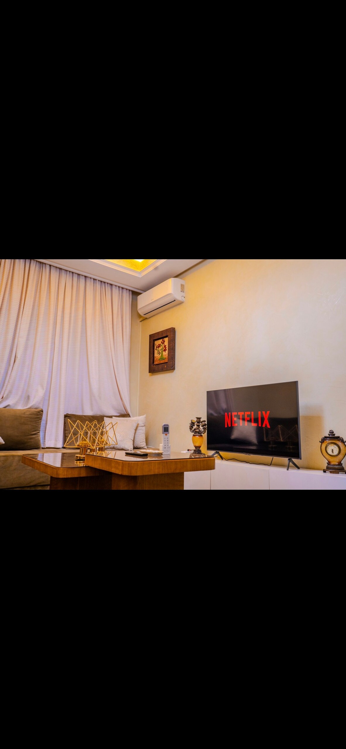 Vous êtes à la recherche d'un appartement moins cher qu'un hôtel. Découvrez cet appartement luxueux en plein centre-ville de Tanger et avec vue partielle sur mer, à 2 min de Marina ,près des cafés et boutiques ,du Mall Ibn Batouta ,de l'ancienne médina et monuments historiques .Le point de départ idéal pour explorer la ville. Cet élégant appartement d'une chambre, un salon ,une terrasse vue mer ,une cuisine américaine , un climatiseur , une WIFI , ( espace de travail ) , smart TV .