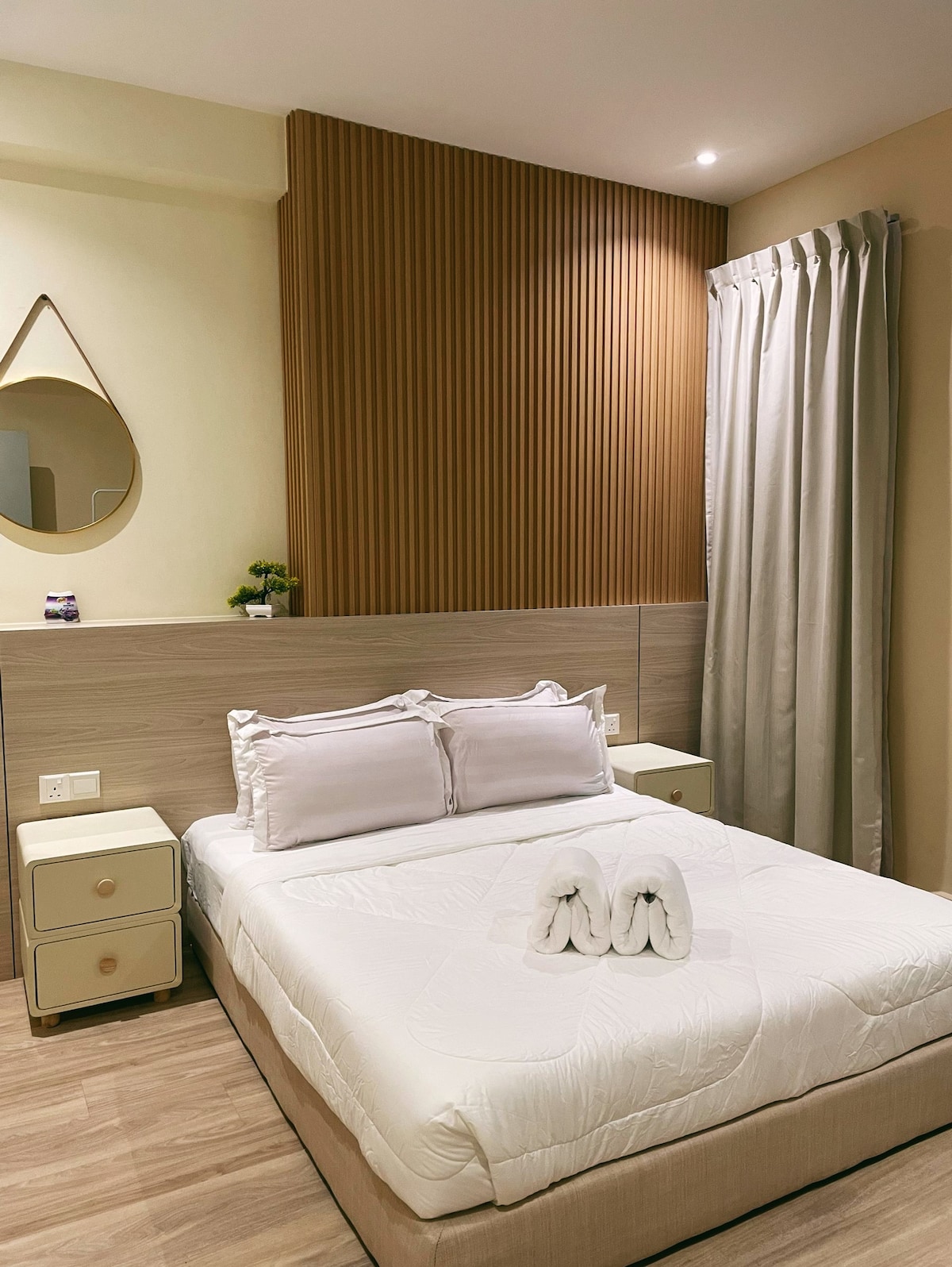 Arusuites est stratégiquement situé au cœur de la ville de Tanjung Aru, où vous pouvez facilement trouver des restaurants, des épiceries, un parc et une plage à distance de marche. L'aéroport international et la ville sont rapidement accessibles en voiture. ⭐️ Restaurants/Bibliothèque d'État de Sabah/Tanjung Aru Plaza - 5 min à pied Parc ⭐️ Perdana (fontaine musicale/piste de jogging) - 8 min à pied ⭐️ Plage : 15 minutes à pied ⭐️ Aéroport - 2 km Centre commercial⭐️ Imago - 2,2 km ⭐️ KK CBD : 15 minutes en voiture