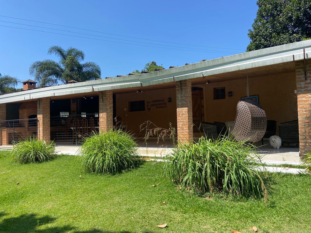 Maison de campagne dans un condominium fermé, grande piscine avec cascade, terrain de football gazonné de 200 mètres carrés, cheminée, barbecue, cuisinière et four à bois, maison en terrasse, ventilateur de plafond dans le salon, suite avec lit box, plus 3 chambres avec lits simples, une à côté du barbecue avec salle de bain, salon avec étagère, canapé et TV LED, cuisine avec réfrigérateur et cuisinière, garage pour 4 voitures et verger simple d'environ 200 m2. Maison entièrement indépendante et privée, sans partage.