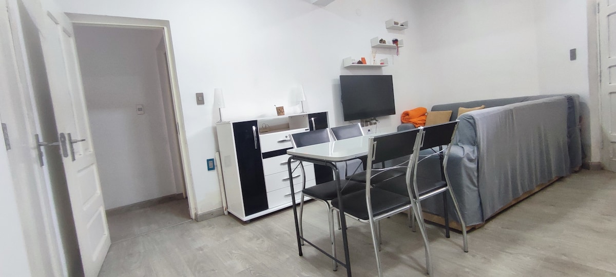 Hermoso Departamento monoambiente independiente ubicado en el centro histórico de Tarija, a 3 cuadras del mercado central y a 7 cuadras de la plaza principal. tienes todo lo necesario muy cerca, como ser el mercado central, farmacia, tienda de barrio, restaurantes, todo lo podes hacer caminando. cuenta con una cama de dos plazas, un comedor, un amplio baño, terraza propia en un piso superior con mesa y sillas para disfrutar el aire libre