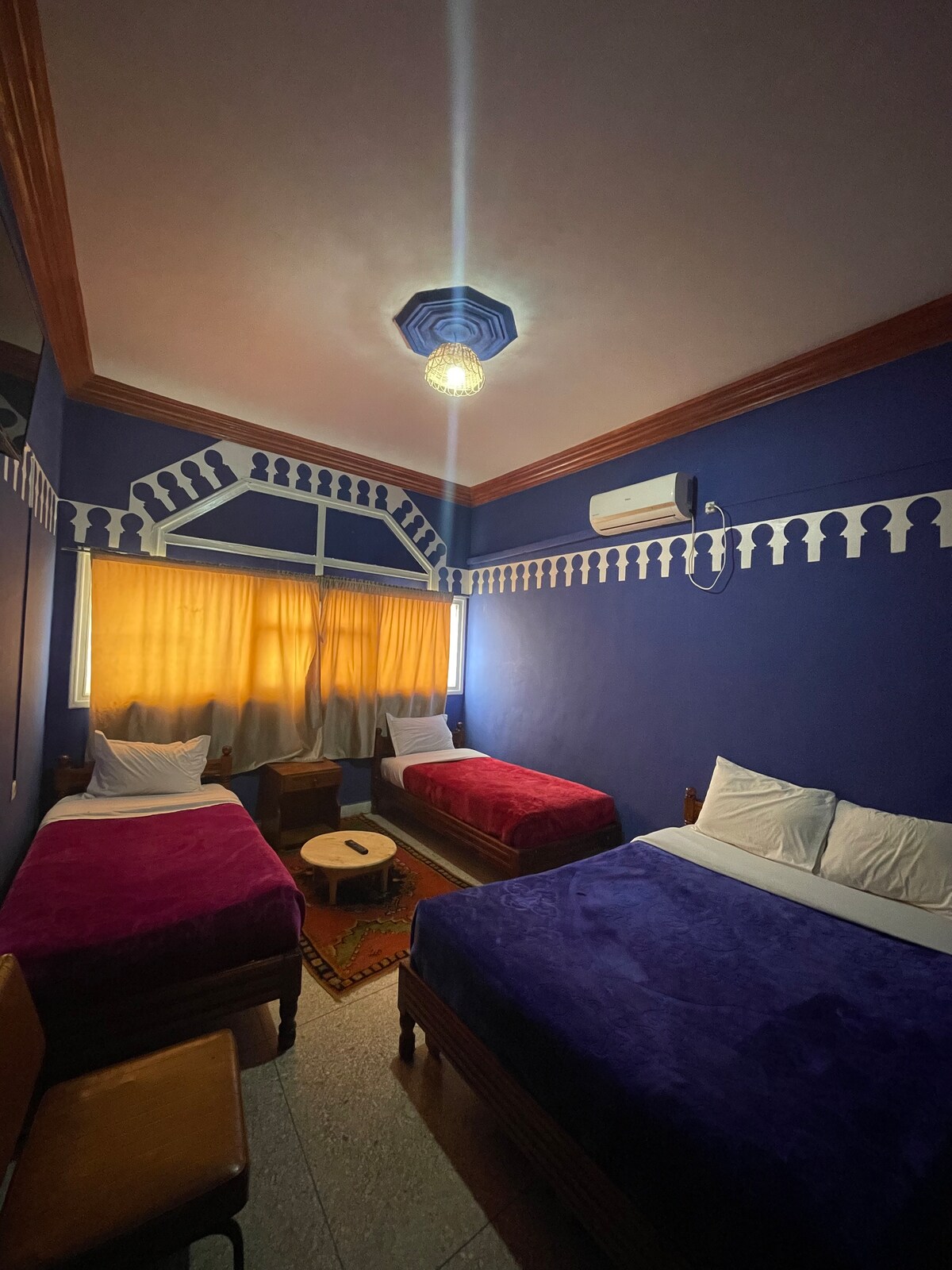 Bienvenue dans notre hôtel à Ouarzazate ! Nous sommes ravis de vous compter parmi nos invités. Notre hôtel offre une atmosphère chaleureuse et familiale, avec une chambre familiale spacieuse et une salle de bains privée. Si vous avez besoin de quoi que ce soit pendant votre séjour, notre personnel amical est là pour vous aider. Merci de nous avoir choisis, et nous espérons que vous passerez un moment de détente et de plaisir avec nous. Bon séjour !