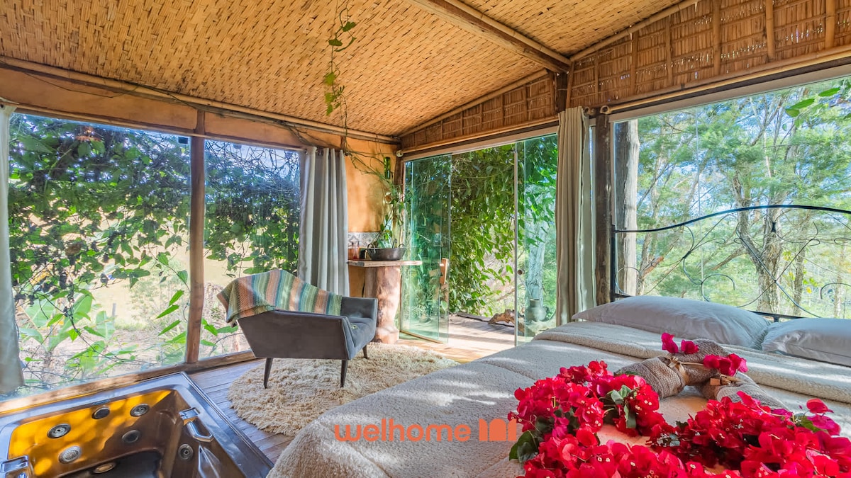 Passez des journées paisibilité dans un chalet rustique en bois fait à la main au cœur d'un site de permaculture. Situé à Taubaté, entouré d'une plantation de melaleucas et surplombant les montagnes, l'espace offre une baignoire traditionnelle ** (pas hydro), literie, serviettes, parking et intimité totale. Un refuge pour ceux qui veulent ralentir, renouer avec la nature et vivre l'essentiel.