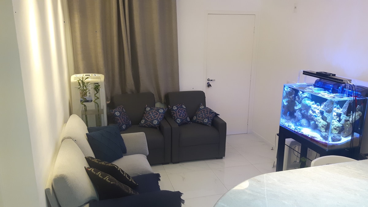 Appartement avec 2 chambres (1 suite avec un lit double et 1 chambre avec un lit simple). Wi-Fi, lave-linge, cuisine équipée, micro-ondes et réfrigérateur. Condominium avec salle de sport, salle de jeux et stationnement. Excellent emplacement, près du centre et des universités. Idéal pour les familles, les étudiants ou les voyages d'affaires!