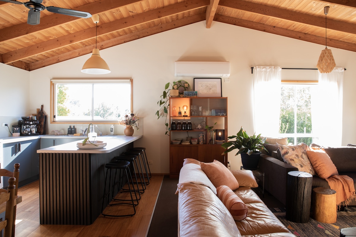Bienvenue à Oro. Hébergement de charme, privé et entièrement indépendant, situé dans une ancienne grange à tabac. Situé à seulement 20 minutes de Bright, ce chef-d'œuvre du paysage australien est entouré de montagnes, de Happy Valley Creek et de 20 acres de terres agricoles. Prenez place sur la véranda pour regarder la brume matinale se lever tranquillement. Observez la faune abondante qui est heureuse d'appeler Oro sa maison, ou soyez enivré par « l'heure d'or » de l'après-midi. Oro, un lieu de provision, de beauté déployée, de repos et de rafraîchissement.
