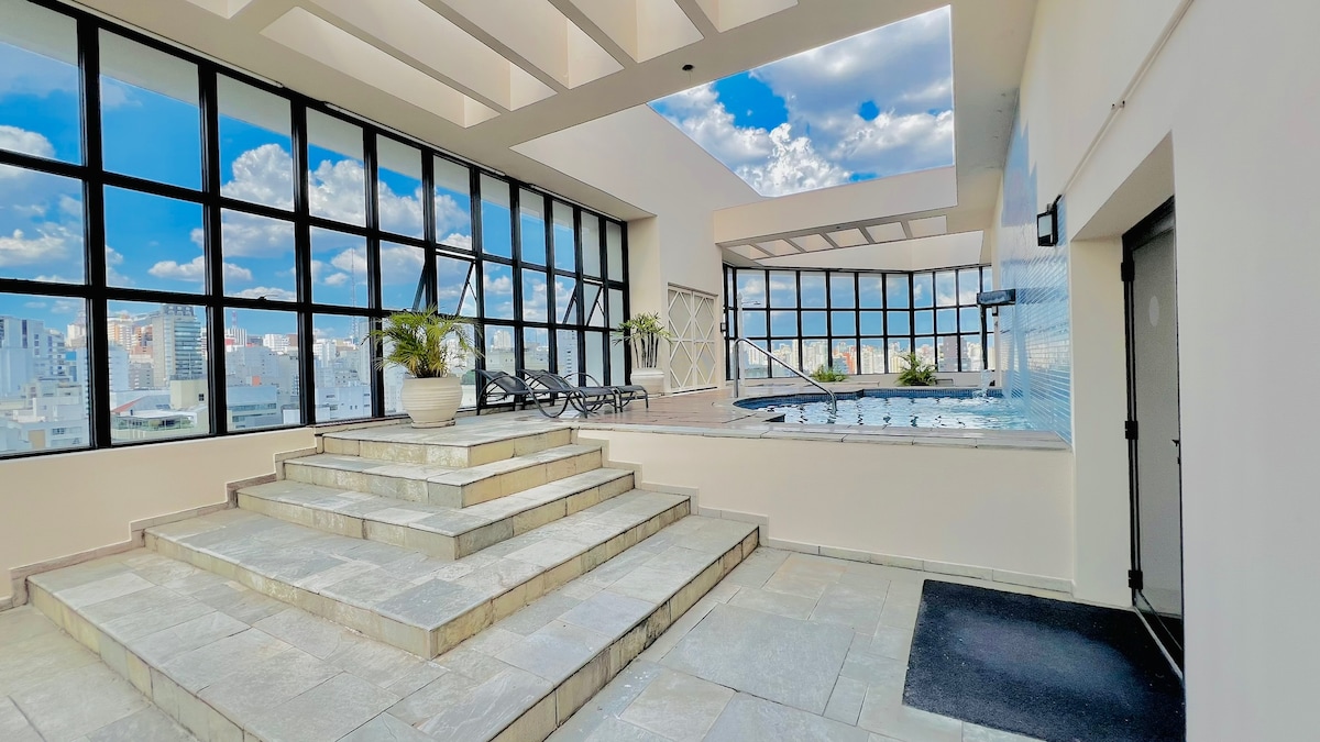 Bienvenus ! Situé à Jardins, SP, ce studio moderne offre une vue imprenable, à proximité d'Oscar Freire et de l'Avenida Paulista. Entièrement meublé, il dispose de la climatisation, d'un lit double, d'une cuisine entièrement équipée et d'une salle de bain complète. Le bâtiment dispose d'une salle de sport, d'une piscine sur le toit avec un bar, d'une buanderie et d'une réception ouverte 24h/24. L'entrée se fait par code électronique. Maximum de deux voyageurs ; l'enregistrement préalable de tous les visiteurs est obligatoire.