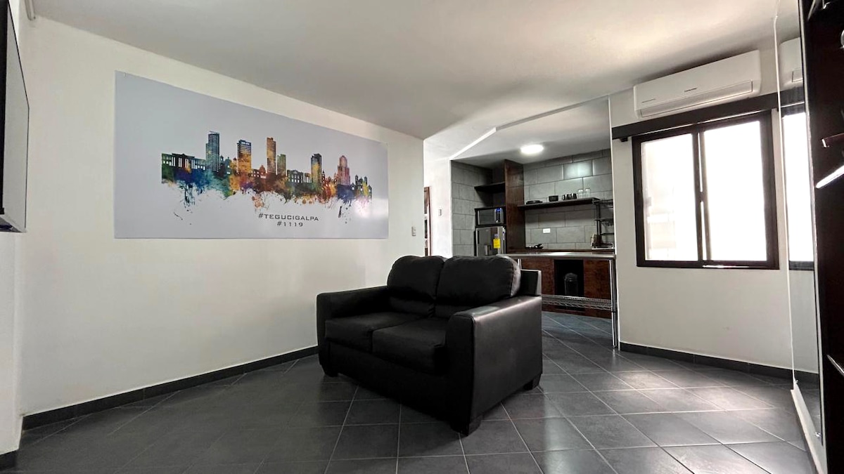 Studio moderne et confortable au cœur de Tegucigalpa. Conçu pour ceux qui recherchent un séjour pratique et sûr. Profitez d'un lit double, d'une cuisine équipée, d'un A/C, d'une connexion Wi-Fi, d'une salle de bain privée, d'un lave-linge et d'un sèche-linge Notre emplacement privilégié vous permet d'accéder facilement aux restaurants, boutiques et points d'intérêt touristique. Idéal pour les voyageurs d'affaires, les couples ou les aventuriers qui souhaitent explorer la ville.