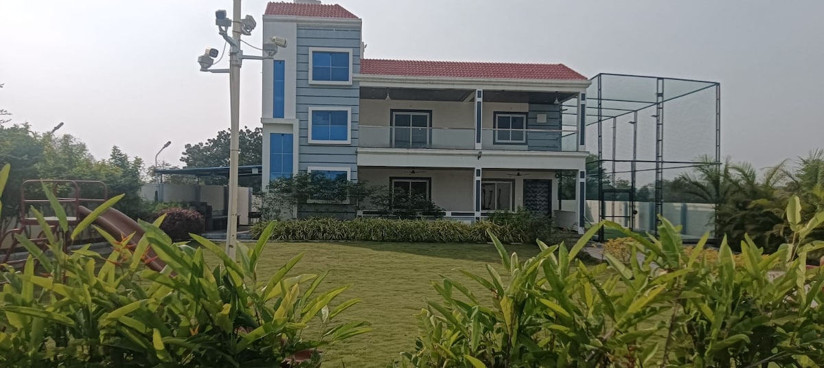 Cette spacieuse villa de ferme en duplex au design élégant allie à merveille charme rustique et sophistication moderne. Elle dispose de 4 chambres entièrement meublées avec salle de bains attenante, d'une piscine étincelante, d'une pelouse verdoyante, d'une aire de jeux pour enfants, d'un terrain de cricket pour adultes et bien plus encore pour offrir un confort et une détente ultimes. Remarque : Il est strictement interdit de boire de l'alcool à l'intérieur de la ferme.