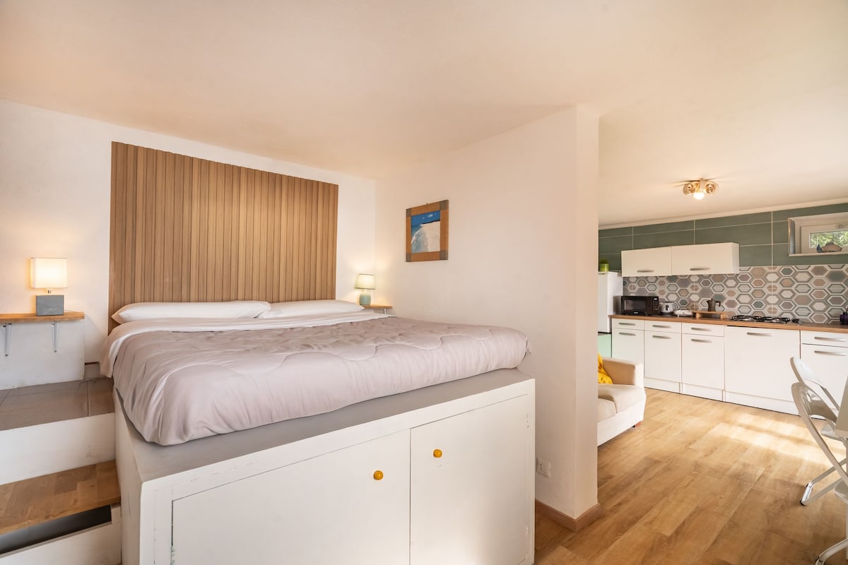 Appartement élégant situé dans le centre historique de Tellaro, à deux pas de la mer. On y accède par deux entrées indépendantes, de la principale on entre dans le salon lumineux, dont une partie en mezzanine avec trois lits ( un canapé-lit double et un simple), par quelques marches on descend dans la cuisine/salle à manger bien équipée et à la première salle de bain avec douche. La deuxième entrée permet un accès direct à la chambre double avec salle de bain attenante avec douche.