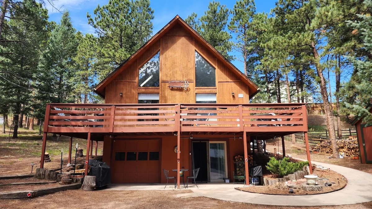 Respirez l'air frais de la montagne dans ce charmant chalet en A avec jacuzzi pour 7 personnes, brasero extérieur, machine Pac-Man et barbecue. Cette retraite tranquille dispose de 3 chambres et de 4 acres, entourée de pins. Il y a beaucoup de sentiers de randonnée, de lacs et de ruisseaux à proximité. Vous n'êtes qu'à quelques minutes en voiture de docou Springs, Woodland Park, jouer à Cripple Creek, Pikes Peak et le Garden of the Gods. Sortez sur la terrasse et découvrez la faune que vous pouvez trouver ! Les souvenirs à créer ici sont infinis.