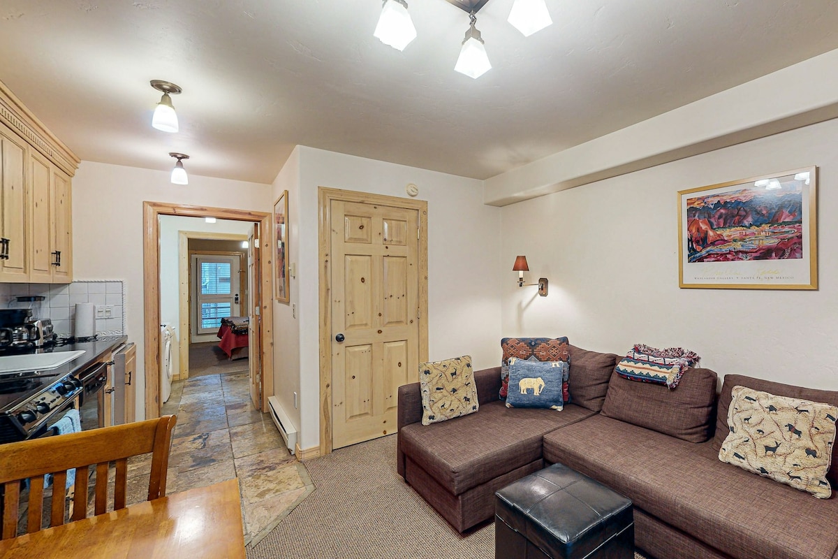 Magnifique appartement de ski à Telluride pour votre longue escapade idéale pour une escapade idéale ! L'unité d'une chambre à coucher + salon comprend une cuisine bien équipée et une laveuse/sécheuse dans l'unité. Récemment meublé et élégamment équipé! L'emplacement dans la ville est à quelques minutes de tout ce que Telluride a à offrir ! Si vous avez besoin de billets de remontée, le comptoir de vente est dans l'immeuble et l'ascenseur n'est qu'à quelques pas de la porte. Ski toute la matinée, réchauffez-vous avec de la soupe, puis glissez directement sur les pistes ! #00081