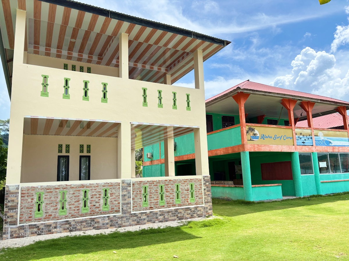 Nous sommes une famille locale vivant à Sorake, Nias, Indonésie. Nous vivons dans une maison simple, à 50 m de la plage. Nous avons une maison d'hôtes à l'étage se composent de 3 chambres. La chambre dispose de la climatisation. Notre endroit se trouve à 200 m du célèbre spot de surf, "le point". Il se trouve à quelques kilomètres d'autres spots de surf. Le petit-déjeuner est inclus. Un repas local abordable est disponible. On peut venir vous chercher à l'aéroport. Nous offrons également des cours de surf pour tous niveaux et des excursions sur l'île. Une moto de location est disponible.