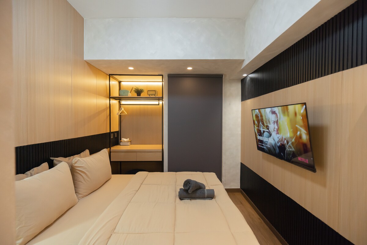 Découvrez une escapade minimaliste et confortable au Tokyo Riverside PIK 2, où le design moderne rencontre le confort. Parfait pour les voyageurs en solo ou les couples, ce studio élégant offre un lit queen size, une cuisine, une télévision intelligente et une connexion Wi-Fi, idéal pour le travail ou le repos. À seulement 1 minute à pied d'un centre commercial en plein air, d'un supermarché et de plus de 90 cafés et restaurants, avec Aloha Pantai Pasir Putih, Pantjoran PIK, NICE PIK 2 et plus à proximité. Propre, confortable et pratique : votre séjour parfait près de l'aéroport.