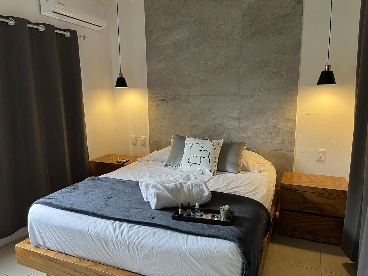 Chambre privée et confortable dans la TEQUILA DU CENTRE-VILLE. Il dispose d'un lit Queen, d'une salle de bain privée, de la climatisation et d'un écran avec Netflix. Espace de 6 chambres privées, sans espaces partagés. Idéal pour se déplacer à pied ou en voiture, à proximité des bars, des restaurants et des principales attractions. Comprend un parking sécurisé à 550 mètres, sans frais supplémentaires. Instructions d'arrivée envoyées à l'avance.