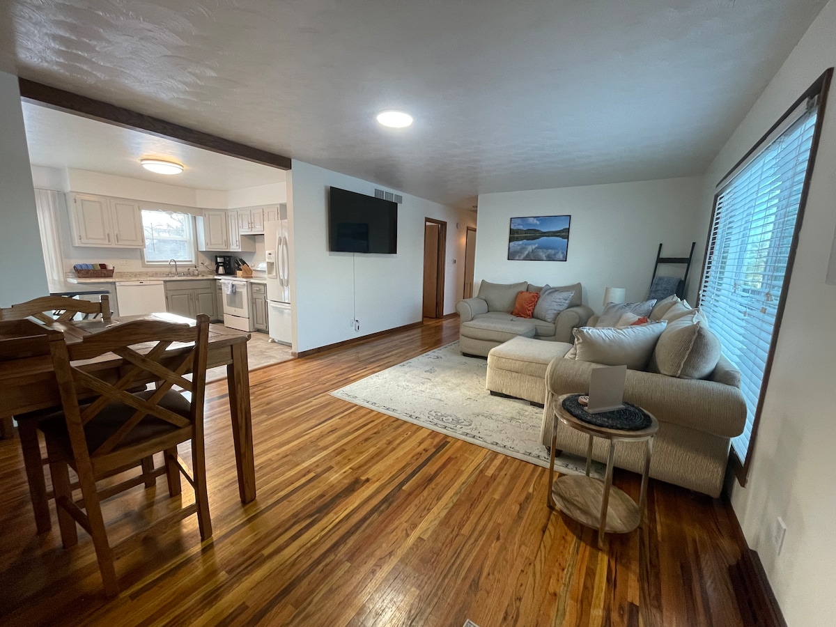 Profitez du spa dans votre propre cour privée, entièrement clôturée, avec un grand canapé et un foyer! Situé au centre-ville de Spearfish dans un quartier paisible, à deux pâtés de maisons de la rue principale. Chiens bienvenus :) La meilleure chose à propos de cette maison est que que vous soyez dans le salon, la cuisine ou la chambre, vous êtes dans la même pièce que vos proches! *NOUS ACCEPTONS JUSQU'À DEUX CHIENS SEULEMENT. FRAIS POUR ANIMAUX DE COMPAGNIE APPLICABLES. PAS DE CHATS. S'IL VOUS PLAÎT ENVOYEZ-MOI UN MESSAGE POUR PLUS DE DÉTAILS.*