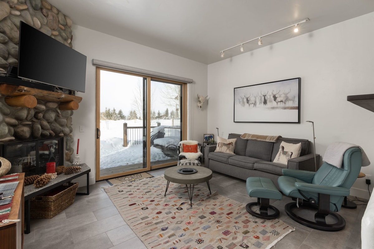 Maison de ville de 4 chambres + loft, 3 salles de bain et demie, vue sur la montagne, 10 couchages, à 1,6 km du parc national de Grand Teton, à 200 pas des pistes de ski. La propriété comprend un accès gratuit à la piscine saisonnière et à un jacuzzi.