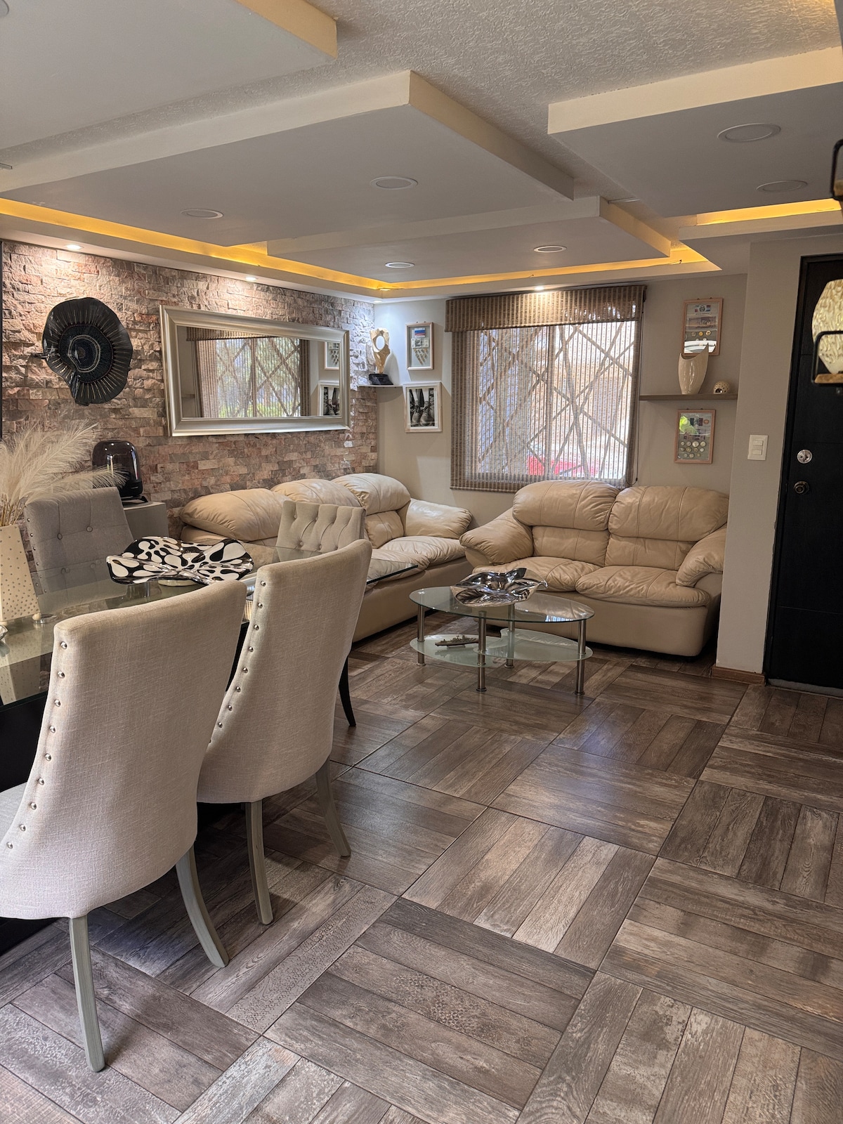 Charmant appartement d'une chambre situé dans la zone exclusive d'argent Pachuca, privée sûre et calme. Profitez d'un lit queen confortable, d'une grande armoire, d'un SmartTv. Équipé d'un poêle, d'un réfrigérateur, d'une cafetière et des ustensiles nécessaires pour cuisiner, salle à manger pour 4 personnes. Salon confortable avec un canapé confortable. Salle de bain moderne et propre. Wi-Fi, parking sécurisé 24 h/24. À quelques minutes des restaurants, des magasins et des attractions touristiques. Accès aux transports en commun et aux principales routes de la ville.