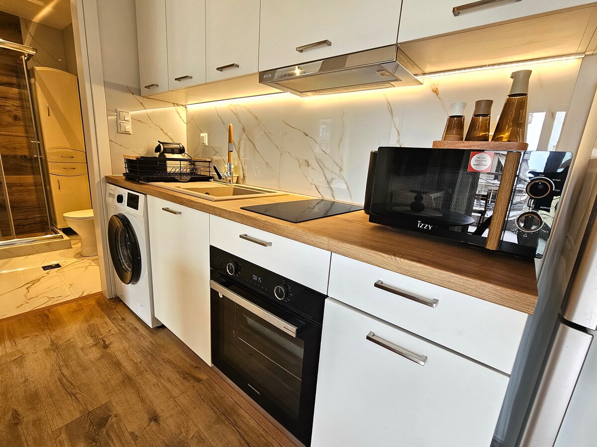 Élégant appartement de 47 m², 2 chambres dans un quartier convivial avec une terrasse confortable et des meubles d'extérieur pour la détente ! L'appartement est situé à 5 minutes en voiture du centre-ville et à 1 km de la plage organisée la plus proche qui dispose d'un restaurant en bord de mer et d'un café-bar. L'aménagement moderne et la propreté des lieux dans un quartier calme et paisible rendront votre séjour unique et inoubliable.