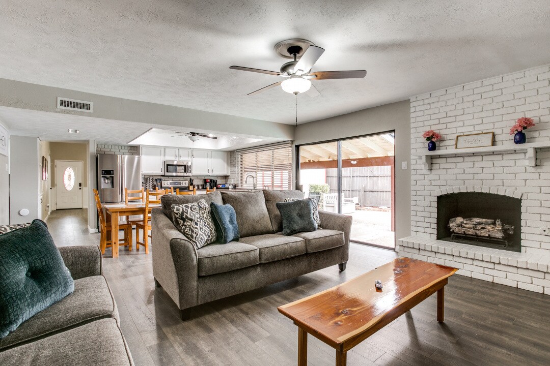 Family-friendly home 10 minutes from Universal Kids Resort, 10 minutes from Grandscape, TOCA Social, Andretti Go-karting, PopStroke and tons of restaurants! Easy drive to AT&T Stadium for FIFA World Cup 2026 and The Star in Frisco. Near Lewisville Lake, PGA headquarters, Stonebriar Centre, and Legacy West. Open layout, natural light, stainless steel kitchen, washer/dryer, and a landscaped patio with built-in fire pit and Adirondack chairs, perfect for unwinding after a long day!