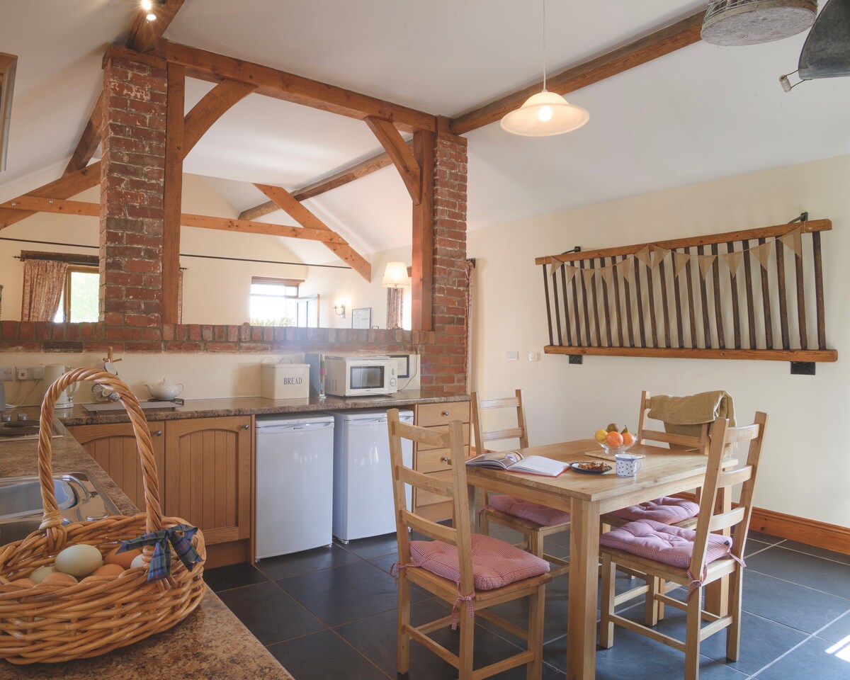 Situé dans une campagne paisible, à la frontière du Pays de Galles, au bout de notre allée privée, un charmant et spacieux chalet Tudor du XVIe siècle offre de magnifiques vues, est isolé, entouré d’un mur, dispose d’un jardin de roses et d’une porte privée, et est sécurisé pour les chiens. Un chalet romantique parfait pour les couples. Elle est dotée de poutres en chêne, d’un foyer à bois Ingle Nook et d’une grande chambre aérée à poutres apparentes offrant une vue imprenable sur la campagne du Herefordshire à l’est. Profitez du soleil du matin en prenant votre déjeuner près de la porte ouverte et écoutez les oiseaux.