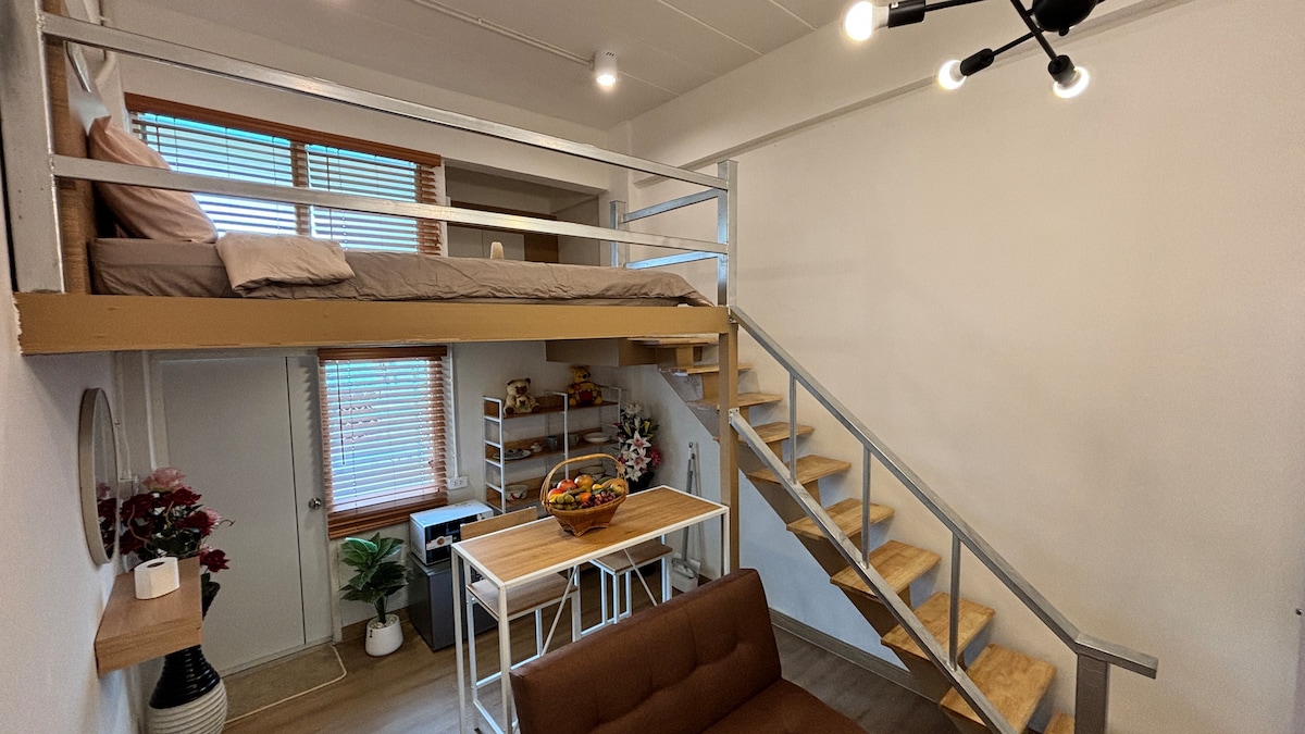 Rama9 Duplex 2 chambres LOFT Suite avec balcon 21D / 5 personnes / Piscine sur le toit / Près de RCA / Près du marché de nuit du train / Près de Tonglor