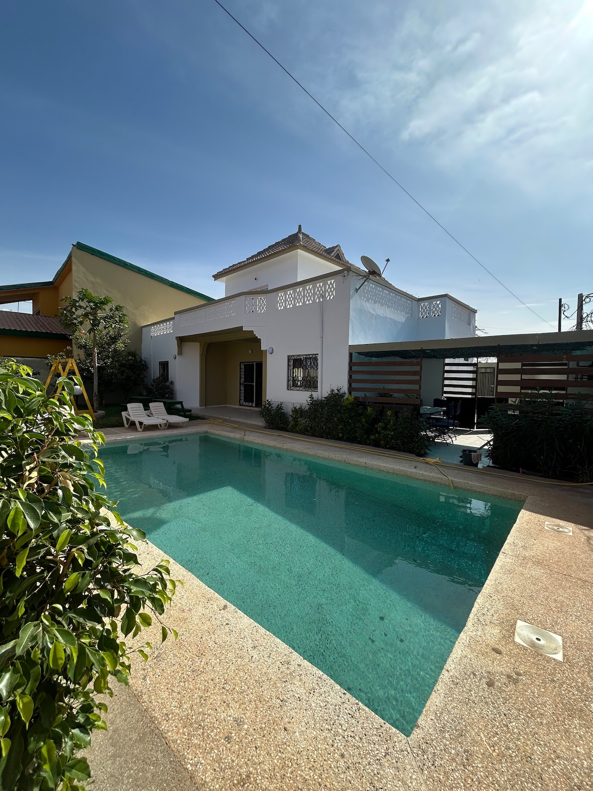 Détendez-vous dans ce logement calme et élégant, Piscine privée, eau chaude, Climatisation Au centre de Thies , à 20 mn de l’aéroport du Sénégal. Salon, cuisine équipée et dînatoire, deux chambres avec grand lits, Bien sécurisé, avec terrasse. Style européen avec le charme sénégalais, Pas loin du Auchan, taxi facile ou voiture Personnelle. Mbour3: quartier calme idéal pour se déplacer dans Thies Les locataires souvent contents de mes logements. Personne sur place pour renseignement et repas