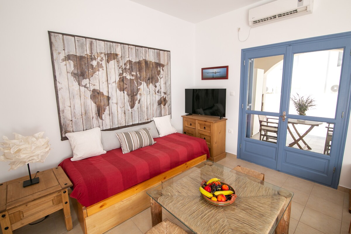 Évadez-vous dans notre charmante retraite de Santorin avec des vues inégalées sur le coucher du soleil. Nichée au cœur de Santorin, notre demeure confortable offre un havre romantique pour les couples à la recherche d'une escapade mémorable. Profitez de la vue imprenable depuis votre terrasse privée alors que le soleil peint le ciel dans des teintes d'or et de cramoisi. Plongez dans le charme de Santorin avec notre espace méticuleusement organisé, conçu pour le confort et la détente. Découvrez la magie de Santorin dans notre retraite unique.