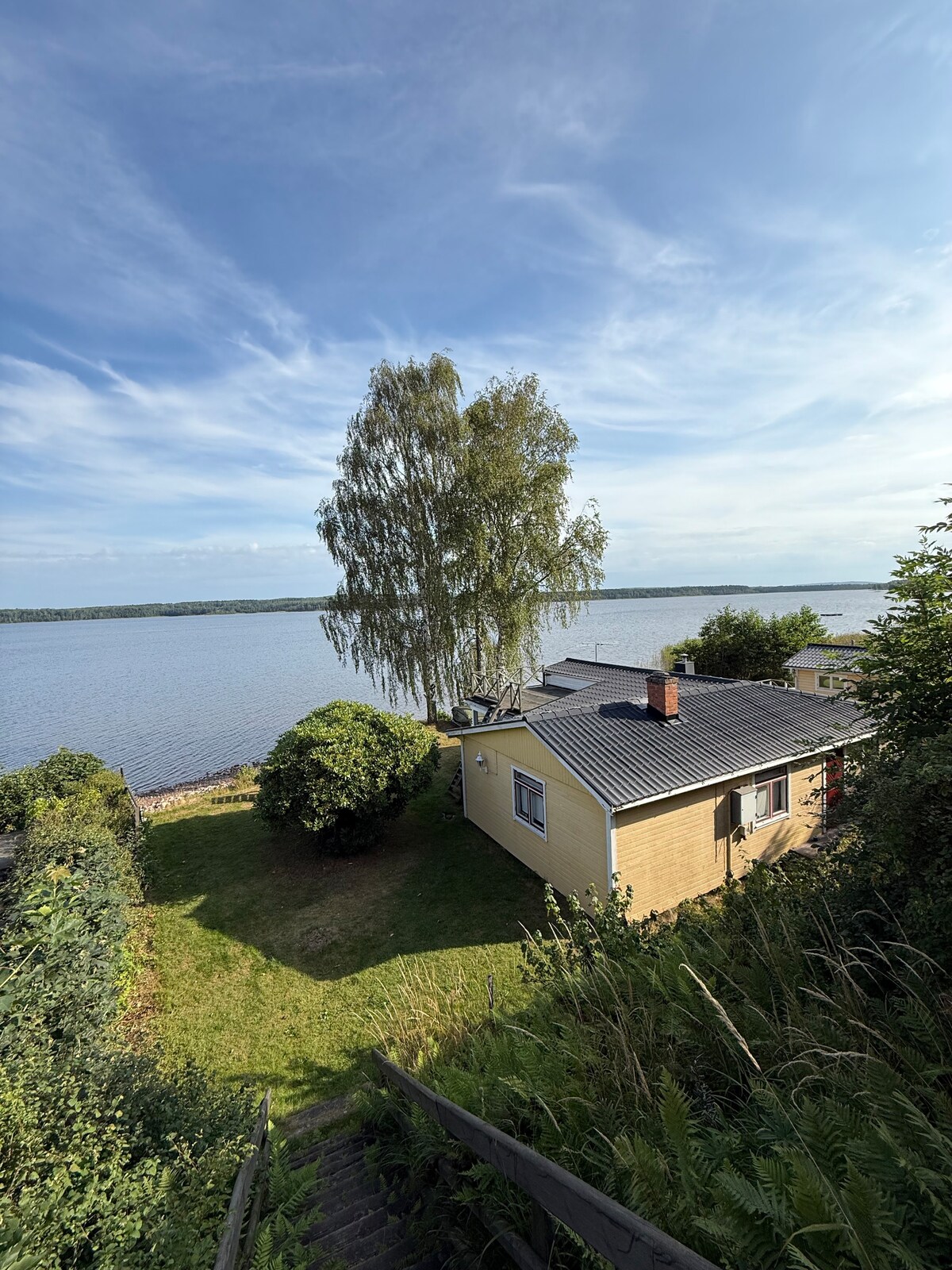 Belle maison ancienne en rondins avec cheminée et wifi. Récemment restauré avec tout le confort. Magnifiques couchers de soleil longs sur le lac. Marchez 250 m jusqu'à la plage. Amical pour les enfants. Utilisez le bateau, les vélos et le canoë ou allez patiner/skier. Bienvenue dans notre paradis.