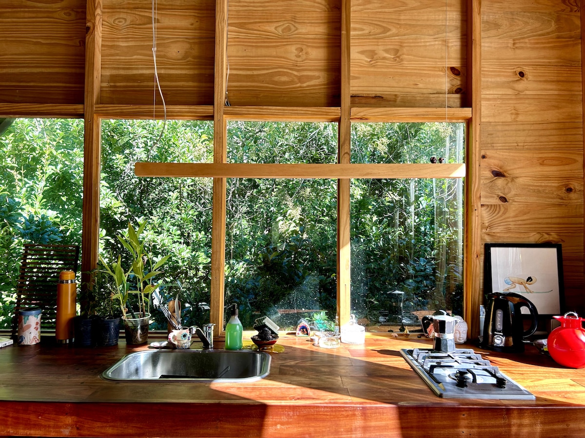 Profitez de l'environnement naturel enchanteur de ce logement romantique. Créée par l'artiste hôte Sebastián, c'est une petite maison immergée dans la nature, sur un côté de la rivière. Vue sur la ville de Buenos Aires et tout l'horizon du Rio de la Plata. Durable avec de l'énergie solaire, purificateur d'eau potable et biodigesteur. Petit bateau pour deux, accès pour les bateaux, et hamacs paraguayens Deux jours dans cette maison avec votre partenaire vous connecteront à un monde de rêve.