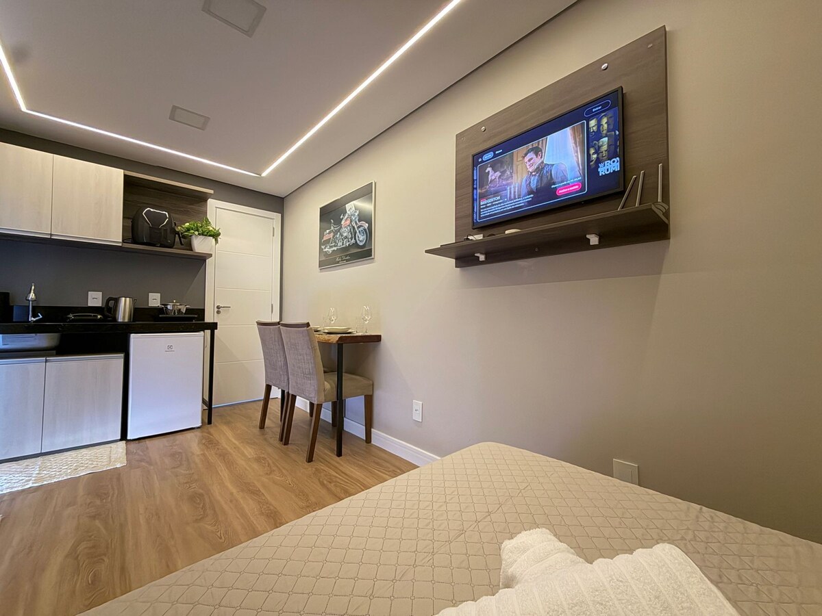 Très bien situé ! Le studio est situé dans l'une des principales avenues de la ville, à proximité d'Atitus Educação, Passo Fundo Shopping, des pharmacies, des supermarchés et des magasins de fruits. Studio neuf, décoré, conçu pour que vous passiez un séjour confortable et tranquille. Commodités de l'appartement : -TV Netflix ; - Climatisation ; -Bon éclairage ; -Internet rapide ; - Lit confortable ; -Lave-linge et sèche-linge ; -Micro-ondes ; - Réfrigérateur ; -Airfryer ; -Sèche-cheveux ; -Vaporisateur pour les vêtements ; -Miroir ; - Bouilloire électrique.