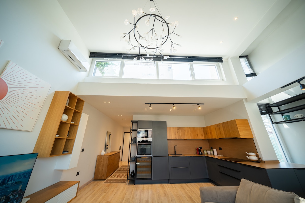 Superbe appartement au cœur de Tirana, avec une vue magnifique, un éclairage naturel et avec une terrasse spacieuse à l'étage qui vous pouvez voir la ville (la nuit le ciel est magique). Un design moderne avec une touche de chaleur du bois et des chambres spacieuses. Situé à seulement 4 minutes à pied du centre et avec connexion à toutes les rues principales de Tirana fait de cet appartement un bon choix pour les voyageurs qui veulent découvrir les attractions culturelles de la ville, les musées, les parcs, les restaurants et la vie nocturne de Tirana.