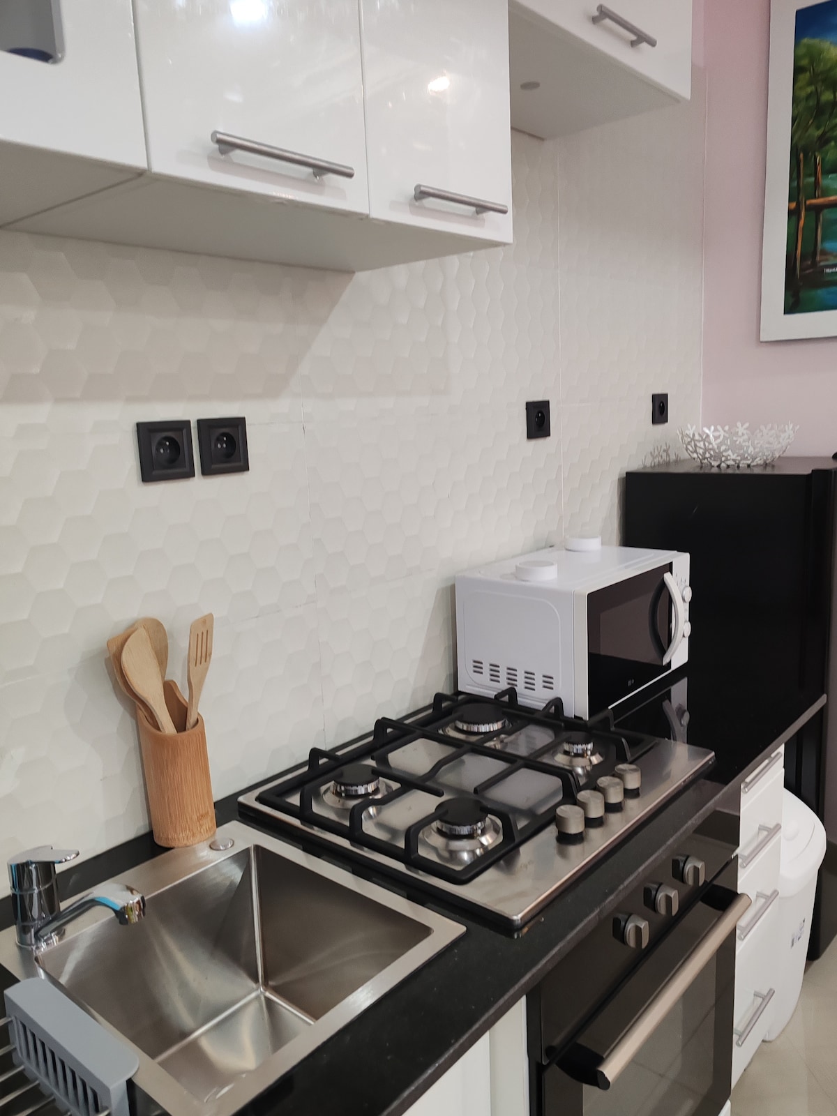 Bienvenue dans ce charmant appartement chambre-salon rénové à Adidogomé, parfait pour un voyageur solo ou un couple. Profitez d’une cuisine moderne équipée, de l’internet haut débit, de la climatisation dans chaque pièce, ainsi que d’une salle de bain élégante avec eau chaude. Situé dans un quartier calme et sécurisé, à seulement 15 min de l’aéroport et du centre-ville, il allie confort, sérénité et excellent rapport qualité-prix.