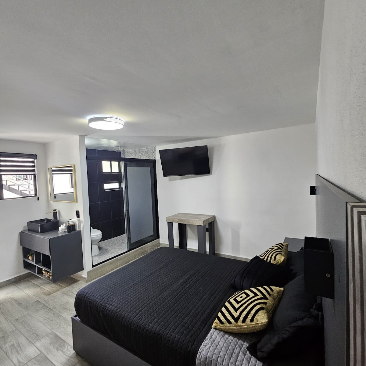 Espace élégant, calme et confortable pour les voyages d'agrément ou d'affaires avec parking, situé tout proche du centre de Toluca, et de la gare routière, avec un accès immédiat au Paseo Tollocan, l'avenue principale de la ville.