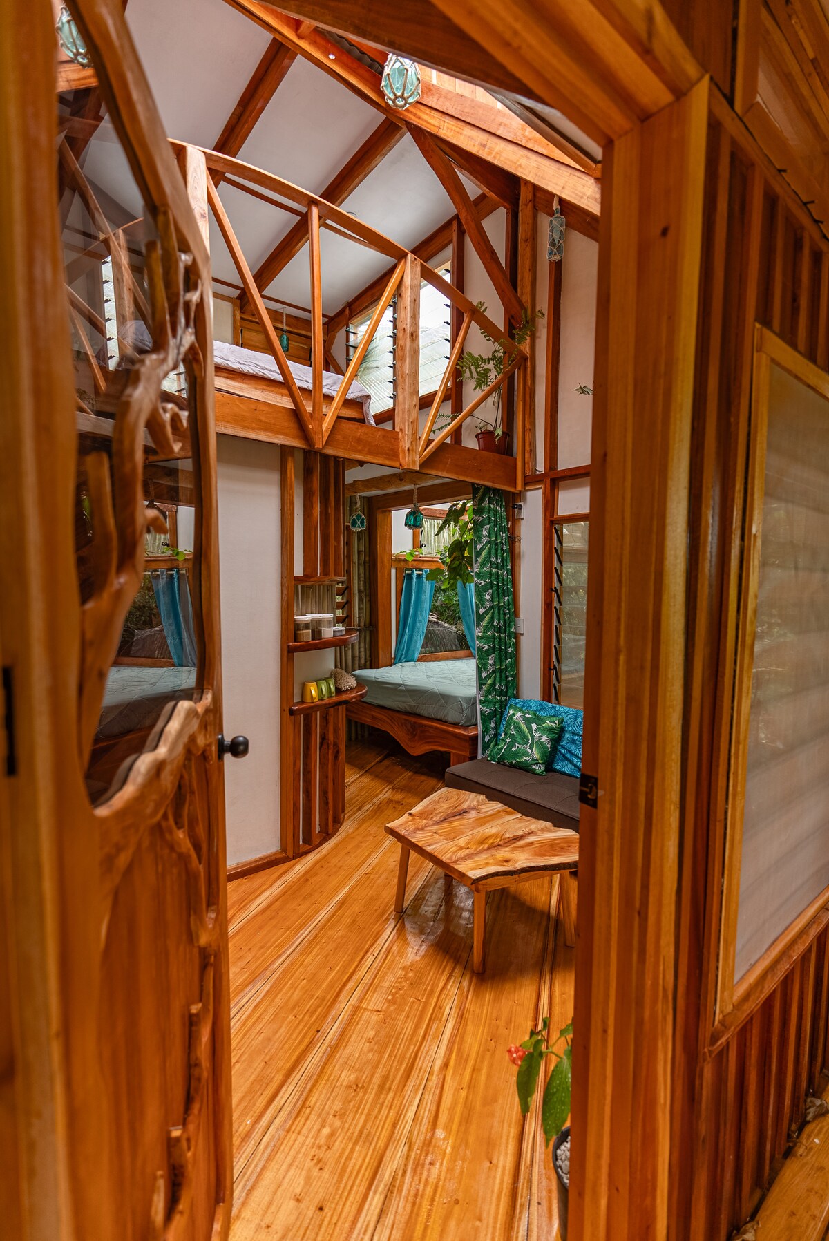 Renouez avec la nature lors de cette escapade inoubliable. La cabane dans les arbres « Jungle Canopy » est nichée à l'ombre de la forêt environnante. Son mobilier sur mesure, ses sols en acajou riches et son plafond tissé à la main créent un environnement chaleureux et confortable.