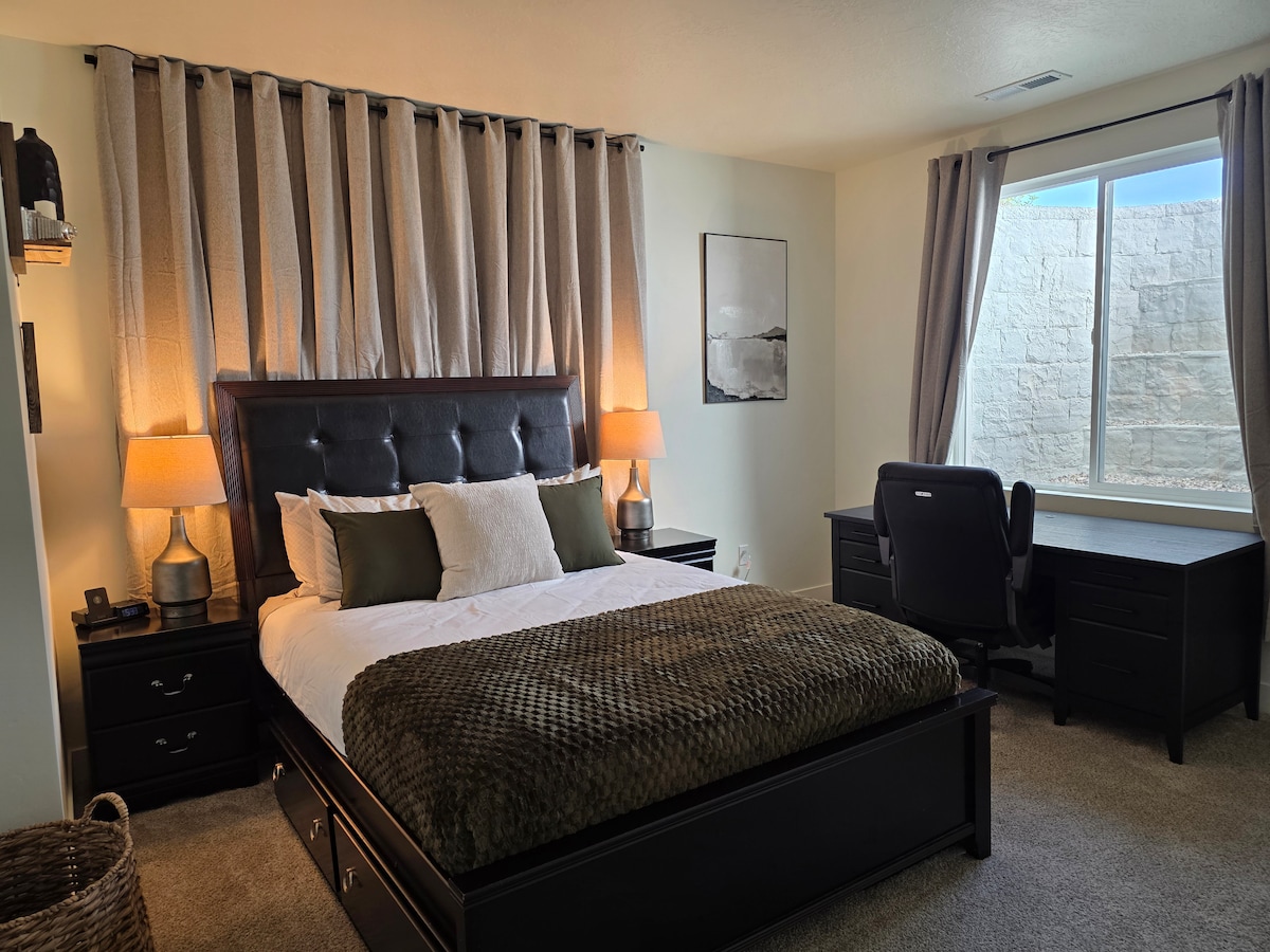 Bienvenue chez vous, loin de chez vous ! À seulement 20 minutes de l'aéroport international de Salt Lake City et à 25 minutes en voiture du centre-ville de Salt Lake City. Ce logement Airbnb de 1900 pieds carrés au sous-sol offre une vue imprenable sur le Grand Lac Salé et un accès rapide aux magnifiques montagnes Oquirrh pour la randonnée et l'exploration en plein air. Entrez dans un logement propre et confortable, idéal pour les voyageurs, les couples ou les aventuriers en solo. Cet appartement au sous-sol dispose de tout ce dont vous avez besoin pour un séjour reposant.